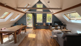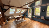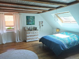 A l'étage vous trouverez un très grand espace à vivre particulièrement lumineux avec accès à une terrasse, une grande chambre ainsi qu'une seconde salle d'eau équipée